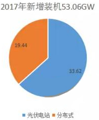 2017年新增裝機53.06GW,分布式19.44GW,占36.64%