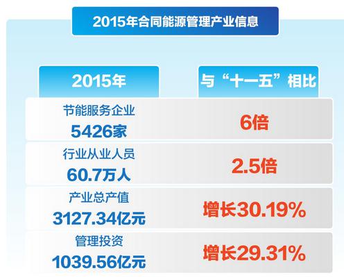 數(shù)據(jù)顯示,“十二五”累計合同能源管理投資3710.72億元,形成年節(jié)能能力1.24億噸標準煤,減排二氧化碳3.1億噸。