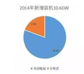 2014年新增裝機10.6GW,分布式2.05GW,占19.34%